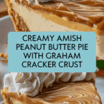 Keywords: Amish peanut butter cream pie, peanut butter pie, creamy peanut butter dessert, no-bake peanut butter pie, graham cracker crust pie