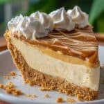 - Add Finishing Touches: In a cold bowl, beat 1 ½ cups cold heavy cream, ¼ cup powdered sugar, and ½ teaspoon vanilla extract until medium-stiff peaks form—this is your whipped cream topping. Spread or pipe the whipped cream evenly over the chilled pie. Garnish the top with chopped roasted peanuts, chocolate shavings, or a drizzle of melted peanut butter or chocolate syrup to add texture and extra sweetness.