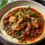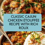 Authentic Chicken Étouffée is a comforting Cajun classic featuring tender chicken thighs simmered in a rich, deeply flavored roux-based sauce with the traditional ‘holy trinity’ of onion, bell pepper, and celery. Served over steamed white rice, this dish is a perfect blend of smoky, spicy, and hearty flavors inspired by Louisiana cuisine.