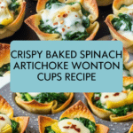 Keywords: spinach artichoke appetizer, baked wonton cups, spinach artichoke dip recipe, easy party appetizers, cheesy spinach artichoke
