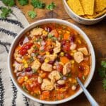 Keywords: BBQ Chicken Soup, chicken soup, smoky chicken soup, pinto beans soup, sweetcorn recipe, easy soup recipes, comforting chicken soup, stovetop soup