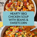 A hearty and flavorful BBQ Chicken Soup combining tender chicken breast pieces with smoky BBQ sauce, pinto beans, sweetcorn, and fresh vegetables in a comforting, easy-to-make broth. Perfect for a cozy meal that adds a twist to traditional chicken soup with smoky, slightly sweet notes.