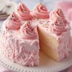 This Beautiful Pink Angel Food Cake is a light, airy dessert with a delicate strawberry flavor and a stunning pink hue. Made by whipping egg whites to stiff peaks and folding in sifted cake flour and sugar, it results in a tender, fluffy cake perfect for celebrations or an elegant treat. The optional rainbow sprinkles add a fun, colorful touch to this classic angel food cake.