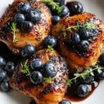 A delightful and elegant Blueberry Thyme Chicken recipe featuring juicy seared chicken breasts topped with a vibrant blueberry-balsamic sauce infused with fresh thyme. Perfect for a flavorful weeknight dinner or special occasion.