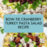 This Bow-Tie Cranberry Pasta Salad is a delightful combination of tender pasta, savory turkey, and sweet dried cranberries, all tossed in a creamy poppy seed dressing. It’s a perfect dish for potlucks, picnics, or a light lunch that feels special yet easy to make.