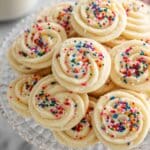 - Pipe the Cookies: Transfer the cookie dough to a piping bag fitted with a round tip. Pipe small circles of dough onto the prepared baking sheet, spacing them slightly apart. If desired, decorate with sprinkles. Chill the baking sheets in the refrigerator for 20-30 minutes so the cookies maintain their shape during baking.
