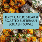 Keywords: butternut squash, steak bowl, garlic herb steak, roasted vegetables, healthy bowl, fall recipe, easy dinner