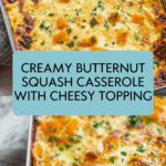 Keywords: butternut squash casserole, vegetable casserole, baked squash, cauliflower casserole, vegetarian comfort food, cheesy casserole