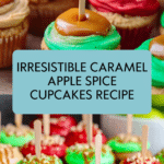 Delight in these Caramel Apple Cupcakes, featuring moist spice cake loaded with fresh apples, topped with luscious salted caramel frosting in vibrant red and green hues. Finished with a gooey caramel drizzle and optional crunchy toppings, these cupcakes are perfect for festive occasions or any sweet craving.