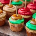 Delight in these Caramel Apple Cupcakes, featuring moist spice cake loaded with fresh apples, topped with luscious salted caramel frosting in vibrant red and green hues. Finished with a gooey caramel drizzle and optional crunchy toppings, these cupcakes are perfect for festive occasions or any sweet craving.