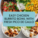 Keywords: Chicken burrito bowl, grilled chicken, pico de gallo, avocado, Mexican bowl, healthy dinner, quick chicken recipe