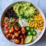 This Chicken Burrito Bowl combines tender grilled chicken with fresh pico de gallo, creamy avocado, and seasoned black beans over fluffy white rice. It’s a vibrant, satisfying meal perfect for a quick lunch or dinner that bursts with flavor and color.