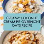 Keywords: overnight oats, coconut cream pie oats, coconut milk breakfast, no-cook oats, healthy overnight oats, vegan option, make-ahead breakfast