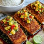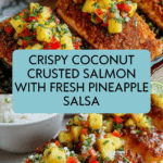 This Coconut Crusted Salmon with Pineapple Salsa is a vibrant and flavorful dish that combines crispy, golden coconut crust with a fresh, zesty salsa. Perfect for a weeknight dinner or special occasion, it offers a delightful balance of savory and sweet.
