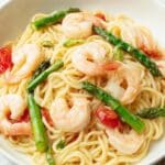 This Copycat Olive Garden Shrimp Scampi recipe offers a rich and flavorful pasta dish featuring tender shrimp, fresh asparagus, and a creamy white wine sauce. It combines garlic, butter, lemon, and Parmesan cheese for a delightful, restaurant-quality meal you can easily prepare at home.