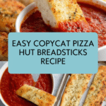 These Copycat Pizza Hut Breadsticks replicate the soft, buttery, and herb-infused breadsticks you love from the popular chain. Made from scratch with a rich, tender dough and topped with a flavorful herbed butter and Parmesan cheese, these breadsticks are perfect for serving warm alongside marinara sauce for dipping.