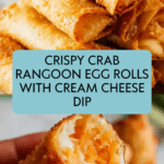 Crunchy, golden-fried Crab Rangoon Egg Rolls filled with a creamy mixture of fresh crab meat, cream cheese, garlic, and green onions. Perfect as a savory appetizer served with spicy Thai chili sauce for dipping.