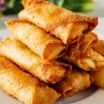 Crunchy, golden-fried Crab Rangoon Egg Rolls filled with a creamy mixture of fresh crab meat, cream cheese, garlic, and green onions. Perfect as a savory appetizer served with spicy Thai chili sauce for dipping.