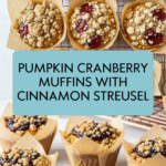 Keywords: pumpkin muffins, cranberry sauce muffins, fall recipes, autumn baking, streusel muffins, holiday muffins