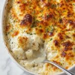 Store leftovers in an airtight container in the refrigerator for up to 3 days. Reheat gently in the microwave or oven until warmed through, adding a splash of cream if the casserole seems dry.