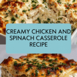 This Creamy Chicken and Spinach Casserole is a comforting and delicious dish perfect for weeknight dinners or gatherings. Packed with tender chicken, fresh spinach, and a rich cheesy sauce, it’s both hearty and satisfying.