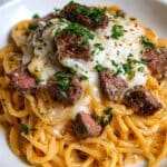 This Creamy Cowboy Butter Linguine with Steak Bites & Spinach is a rich and satisfying dish perfect for a hearty dinner. Featuring tender steak pieces tossed in a luscious buttery cream sauce with fresh spinach and Parmesan, it brings together bold flavors in just one pan.