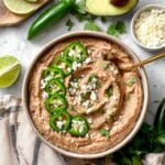 - Serve: Serve warm as a side dish or dip. Top with Cotija cheese, cilantro, jalapenos, tomatoes, pico de gallo, or avocado as desired. Perfect for burritos, tacos, quesadillas, or enjoyed on its own.