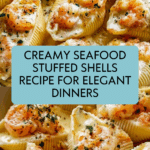 Creamy Seafood Stuffed Shells are a luxurious comfort food featuring jumbo pasta shells filled with a rich blend of lobster, crab, and garlic, mixed with cream cheese and mozzarella. Topped with a decadent cheese sauce made from butter, flour, heavy cream, Parmesan, and mozzarella, this baked dish offers an elegant and satisfying meal perfect for special occasions or cozy dinners.