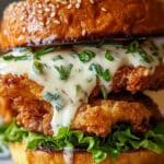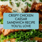This Crispy Chicken Caesar Sandwich combines tender, buttermilk-marinated chicken breasts coated in a flavorful panko and garlic powder crust, fried to golden perfection, and served on toasted bread with fresh romaine lettuce, grated Parmesan, and creamy Caesar dressing. A satisfying and delicious lunch or dinner option with a delightful crunch and rich taste.