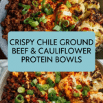 These Crispy Chile Ground Beef and Cauliflower Protein Bowls are a flavorful, high-protein meal perfect for busy weeknights. Combining spicy, seasoned beef with tender cauliflower rice and fresh veggies, they deliver a satisfying and vibrant bowl that’s both nutritious and delicious.