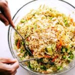 Yes, you can prepare it in advance, but it’s best to toast the noodles and almonds right before serving to keep them crunchy. Mixing the avocado in last minute can also help prevent browning.