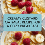 Custard oatmeal is a creamy, comforting breakfast that combines the heartiness of oats with the richness of a smooth custard. It’s easy to prepare and can be customized with your favorite toppings for a nourishing start to your day.