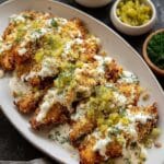 Dill Pickle Parmesan Chicken is a flavorful and crispy air-fried dish featuring juicy chicken breasts coated with a tangy dill pickle ranch and Parmesan cheese mixture, topped with a crunchy breadcrumb layer, and garnished with fresh dill. This quick and easy recipe combines savory, tangy, and cheesy flavors, making it a perfect weeknight dinner option.