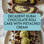 Keywords: Dubai chocolate roll cake, pistachio cream cake, chocolate oat cake, kataifi dessert, chocolate mousse roll