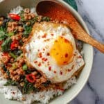 A quick and flavorful Thai holy basil stir-fry featuring ground chicken or beef, fragrant garlic, chilies, and aromatic holy basil, finished with a savory sauce and served with jasmine rice. Ready in just 15 minutes, this classic Thai street food dish is perfect for a spicy and satisfying meal.