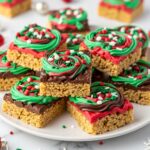- Step 10: Use a knife to gently swirl the red and green chocolate for a festive pattern. Sprinkle Christmas decorations if desired, then let cool completely.