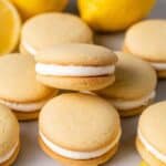 These Easy Lemon Whoopie Pies are delightful sandwich cookies with a soft, lemon-infused cake-like cookie and a tangy lemon buttercream filling. Perfectly balanced with zesty lemon flavor and sweet creaminess, they make a refreshing dessert for any occasion.