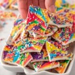 Keywords: rainbow candy bark, white chocolate bark, easy candy bark, colorful chocolate bark, no-bake dessert, chocolate bark recipe
