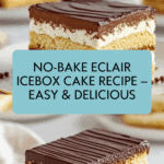 This Eclair Icebox Cake is a no-bake dessert that combines creamy vanilla pudding, fluffy whipped topping, crunchy graham crackers, and a glossy chocolate ganache. It’s an easy, crowd-pleasing treat perfect for warm days or whenever you want a simple yet indulgent dessert.