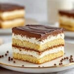 This Eclair Icebox Cake is a no-bake, creamy dessert that layers rich vanilla pudding and whipped topping between graham crackers, topped with a luscious chocolate ganache. Perfect for an easy, chilled treat that captures the flavors of a classic eclair in a simple layered cake.