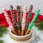 PrintFestive Chocolate Dipped Pretzel Rods Recipe