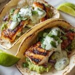 Keywords: fish tacos, lime crema, Mexican tacos, white fish, seafood tacos, fish taco recipe, easy tacos, skillet fish, citrus crema, cabbage slaw