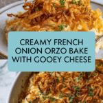 Keywords: French onion, orzo bake, caramelized onions, Gruyère cheese, creamy casserole, comfort food, baked pasta