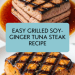 This Grilled Soy-Ginger Tuna Steak recipe features fresh tuna steaks marinated in a flavorful blend of soy sauce, ginger, garlic, sesame oil, and honey. Grilled to perfection, the tuna is tender and infused with a delicious balance of savory and sweet notes—perfect for a quick, healthy, and impressive meal.