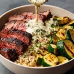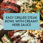This grilled steak bowl combines juicy, perfectly cooked steak with tender grilled zucchini and a creamy herb sauce. It’s a satisfying meal that’s quick to prepare and customizable for any weeknight dinner.