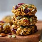 Store these energy cookies in an airtight container at room temperature for 3–4 days. For longer freshness, refrigerate for up to 1 week or freeze for up to 3 months. To enjoy frozen cookies, thaw at room temperature or warm briefly in the oven.