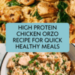 Keywords: High Protein Chicken Orzo, Chicken and Orzo recipe, Easy chicken dinner, Healthy chicken pasta dish, Mediterranean chicken orzo, Protein packed dinner