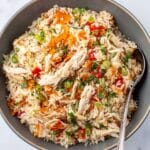 This Instant Pot Chicken and Rice recipe is a quick and flavorful one-pot meal perfect for busy weeknights. Tender chicken pieces are cooked together with jasmine rice and savory vegetables in a rich chicken broth, resulting in a comforting dish that requires minimal effort but delivers maximum taste.