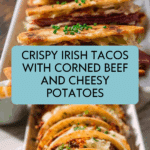 Keywords: Irish tacos, corned beef tacos, cheesy mashed potatoes, skillet fried tacos, cabbage tacos, Irish fusion recipes