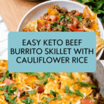 Keywords: Keto beef skillet, low carb burrito, cauliflower rice recipe, keto dinner, ground beef skillet